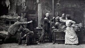Cena da peça “O Submundo”, de Gorki, no Teatro de Arte de Moscovo, em 1902.